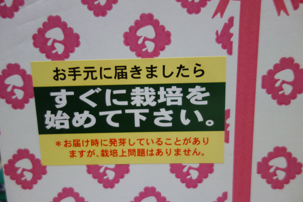 椎茸其2 投稿日時: 2022年2月15日 投稿者: Fatbaby 通販で買った椎茸の受取りは会社で行ったんだけど 祝日の関係で本日14日に手に入れた(本当は11日に来た) まあ、大抵の通販商品は会社で受取るようにしている 家よりも会社にしている方が受取やすいから でもまあ、こんな表示があるんですよねぇ すぐ栽培! てなことで、早速… これね…袋に入れて水をスプレーでやらなあかんらしい… スプレイがない…
