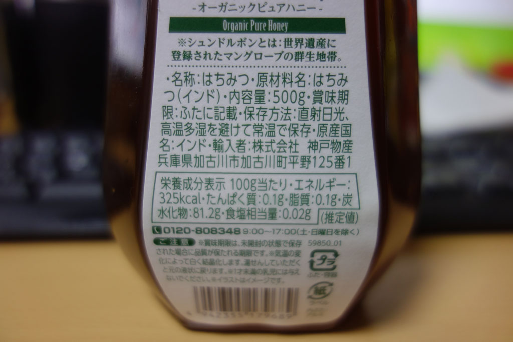 オーガニックピュアハニー シュンドルボンの雨下(うか?)