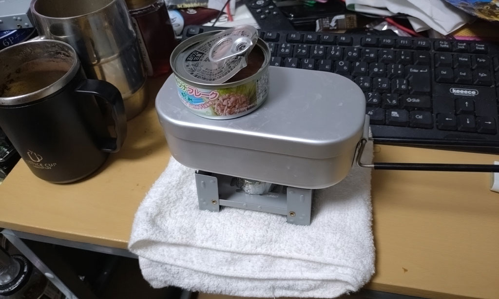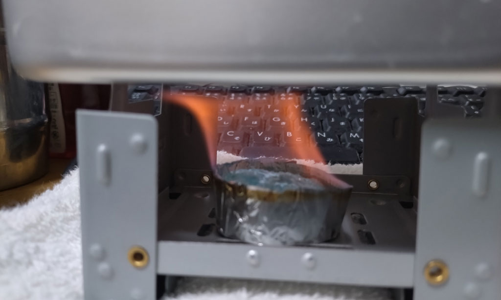 固形燃料が発熱し終えると裏返してタオルで包み15分ほど蒸らす