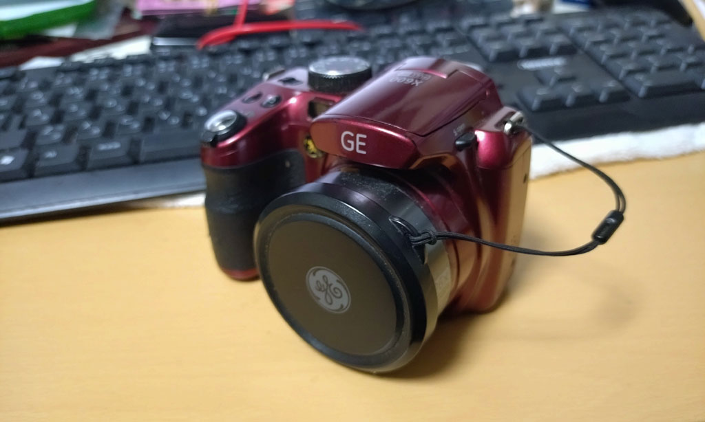 GEのX600という、昔良く使っていたデジカメ。このデジカメはとても良いデジカメで気に入ってたんだけど、撮像素子が1/2.3インチと小さく、今は1インチのソニーRX100を使っている。