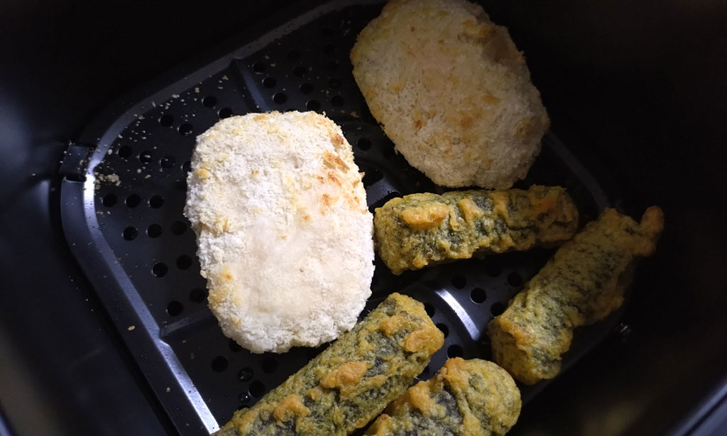 でもまあ、やっぱり油で揚げるのが本来の料理であり、一度油で揚げてからノンフライヤーで焼く?ってのが良いのかも知れない