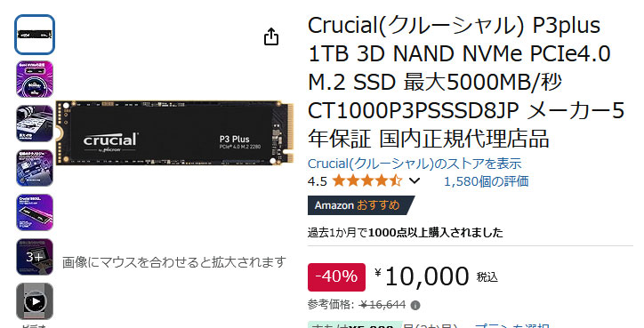 今は8TBとかが1万5千円程度で売っているので、遅い記憶媒体として搭載したい