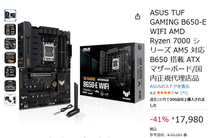ASUS TUF GAMING B650-E WIFI AMD Ryzen 7000 シリーズ AM5 対応 B650 搭載 ATX マザーボード/国内正規代理店品