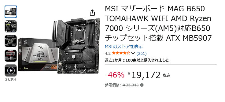 MSI マザーボード MAG B650 TOMAHAWK WIFI AMD Ryzen 7000 シリーズ(AM5)対応B650チップセット搭載 ATX MB5907