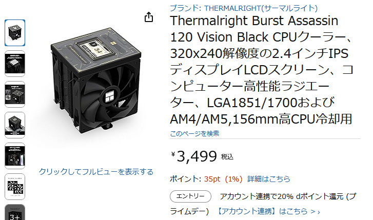 Thermalright Burst Assassin 120 Vision Black CPUクーラー、320×240解像度の2.4インチIPSディスプレイLCDスクリーン、コンピューター高性能ラジエーター、LGA1851/1700およびAM4/AM5,156mm高CPU冷却用