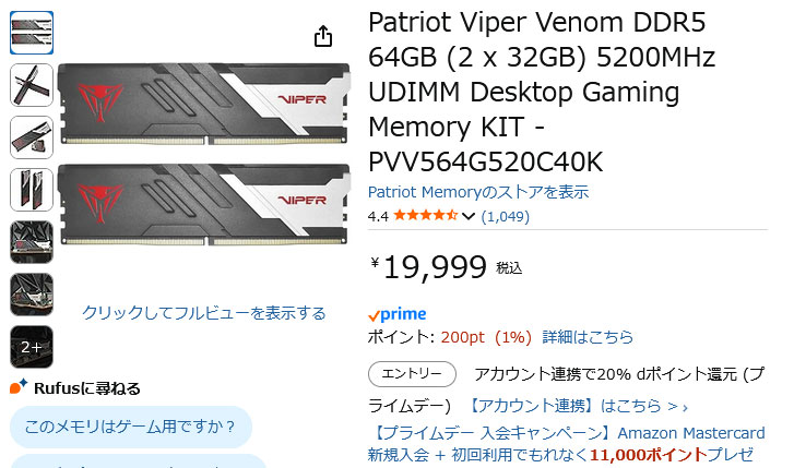 まあ、メモリもDDR5になり高価になるんだけど、20年ぐらい前は64GBなんて容量はなかったもんねぇ(笑) なので、一応メモリはコレ!