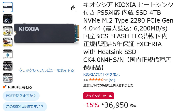 M.2 SSDはKIOXIAの4TBを購入! これはGen4なんだけど、急いで5にする必要はないかな?と思っています 価格がバカ高いし発熱も多いしね