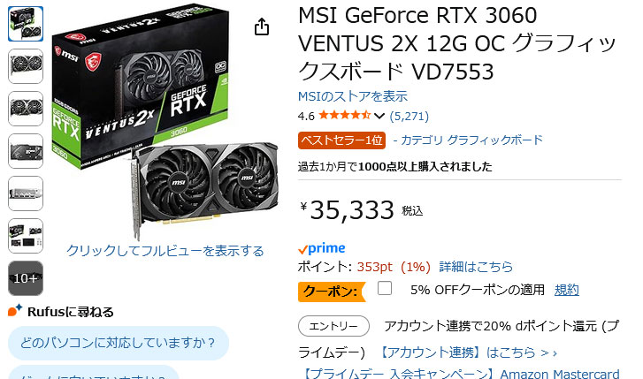 グラボに関しては最新版が15万円ぐらいするんですよねぇ(ちょっと前までは50万円してた…)それからすると、3000番代はまだ現役で売ってるし、この安さ!