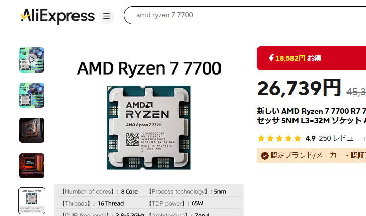 Amazonよりも2万円ほど安かったのが、このCPUに決定した次第でして…