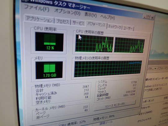 でもやっぱり…メモリ2GBではHDDのガリガリがエバー!(ずっとアクセスしてる!)