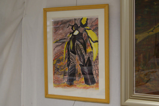 今までは、風景などを描いてたんだけど、お遊びでキャラクターモノを描いたら結構それがたのしくて、さらに見に来てくれる子供によっては古いヒーローモノ?なども知ってる子がいて、ファン?になってくれる子も(笑)