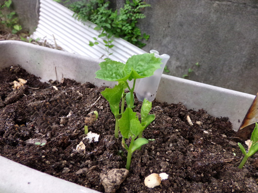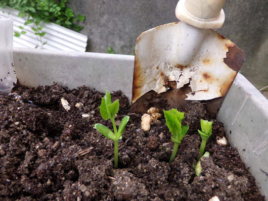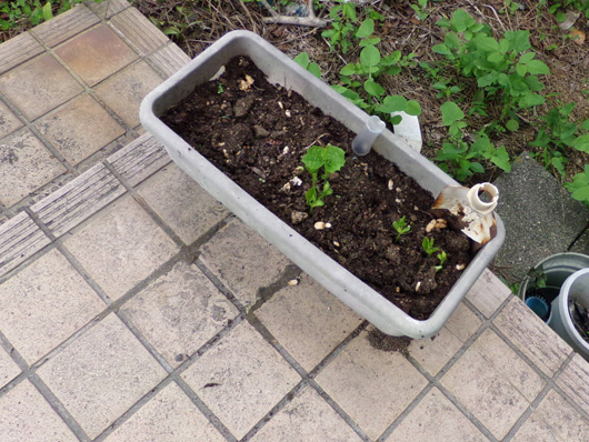そんなこんなで、食べたゴーヤのタネをプランターに蒔いていた。