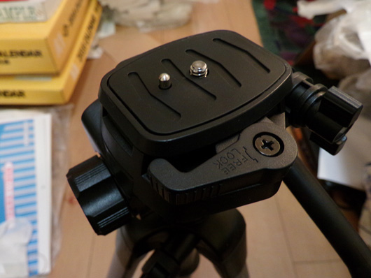 雲台はクイックシューでビデオボス付き。シュー固定レバーも比較的使いやすい