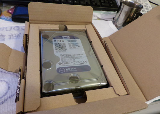 メインで使っているPCのハードディスク容量がイッパイになってきたので3テラバイトのHDDを買った。