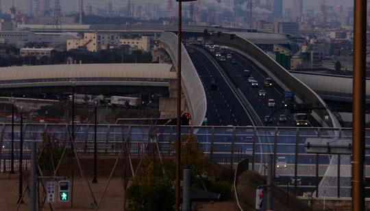 歩道の端にある自転車道の継ぎ目をダンダンと超えていく…