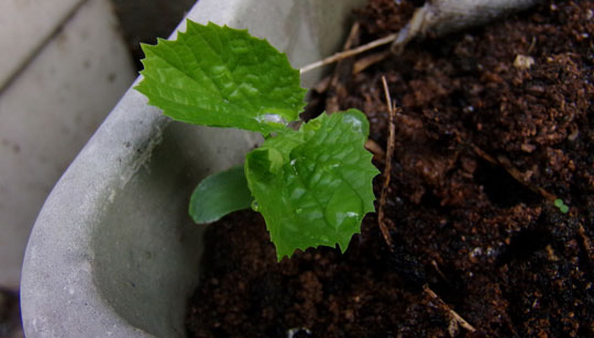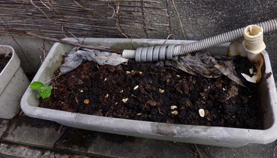 もう一つのプランターにも、これから生える芽がでてきてた