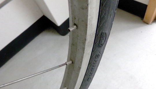 自転車を降りて、後輪のタイヤの空気を手で押して確認してみた。