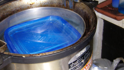 ナントカ手を入れられるほどの熱さまで水を加熱してから…何時間かは持つ(笑)