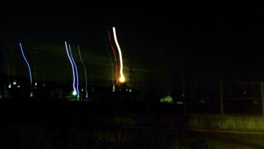 (側道は外灯がついてる)上着に反射板をつけないと