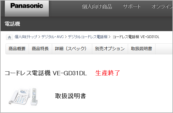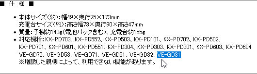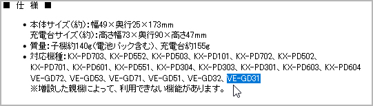 すかさず、子機の品番を調べ、子機の情報をネットでしらべる。