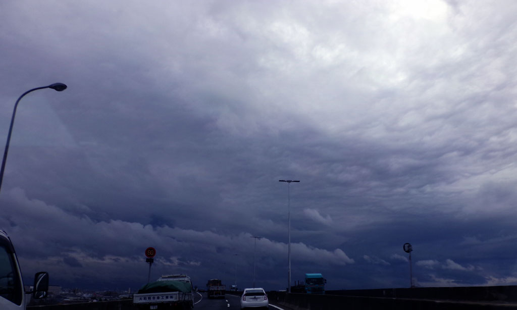 家の方向は雨雲?で暗い…