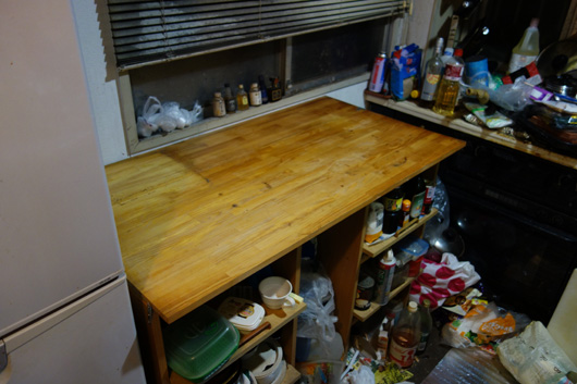 ココも片付けないと…(発掘されたマナイタがホコリダラケ…)