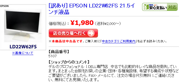 通販で中古ってのは、現物を見れないというのと送料が問題ですよねぇ。液晶は結構大きいので送料もそれなりにかかります…